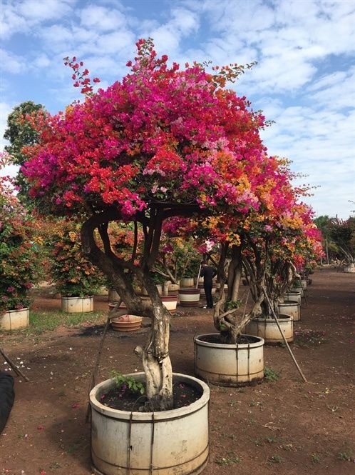 Bougainvillea is an incredibly popular outdoor ornamental plant, known for its vibrant, colorful bracts that bring a cheerful look to any space. This shrubby plant is highly drought-tolerant. It grows vigorously with long, trailing branches, making it ideal for planting outdoors, whether trained on walls, fences, or arches, or grown as a free-standing shrub or tree form.